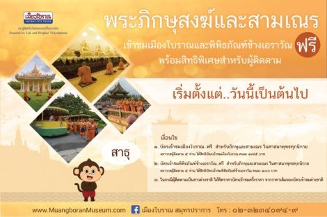 พระภิกษุสงฆ์และสามเณรเข้าชมเมืองโบราณและพิพิธภัณฑ์ช้างเอราวัณ ฟรี